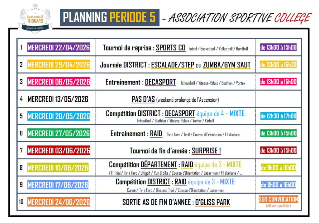 Planning A.S. Collège